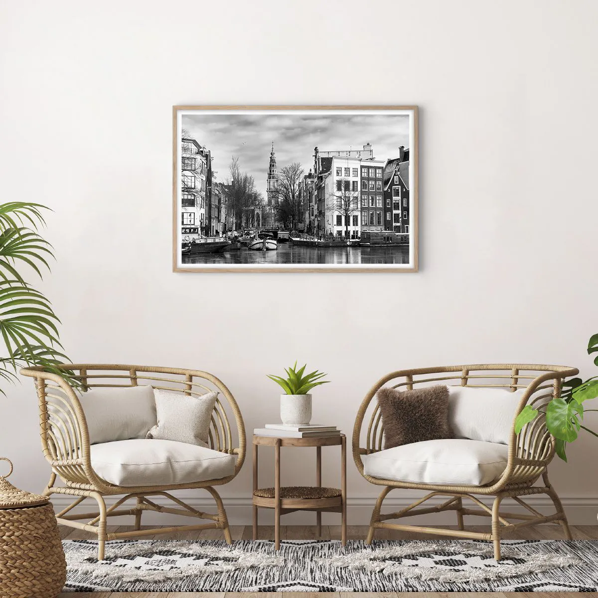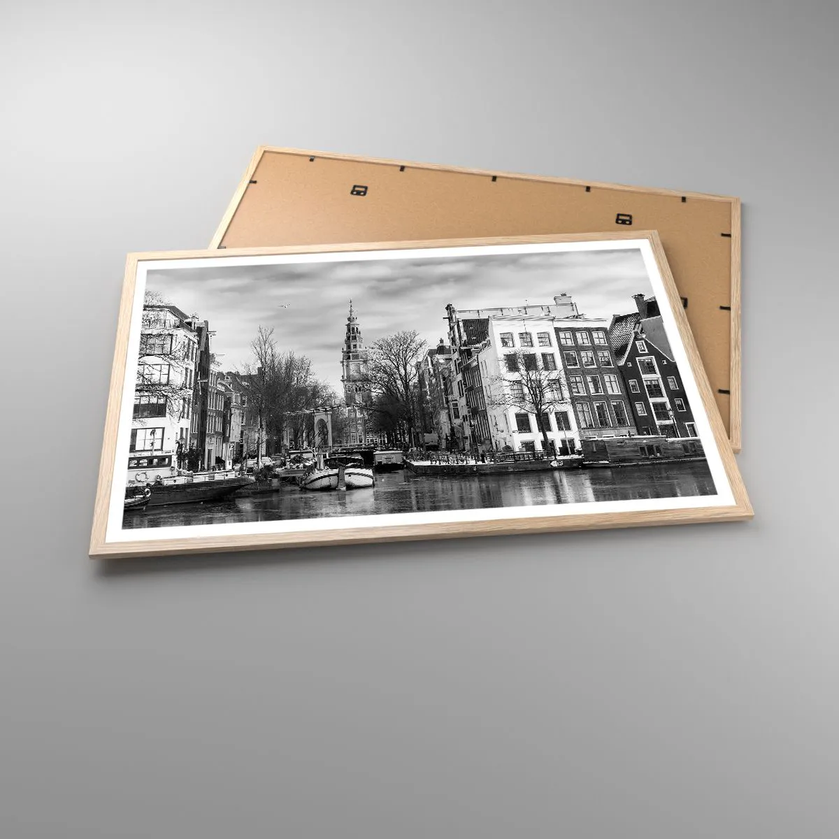 Poster in einem Rahmen aus heller Eiche - Amsterdamer Atmosphäre - 91x61 cm