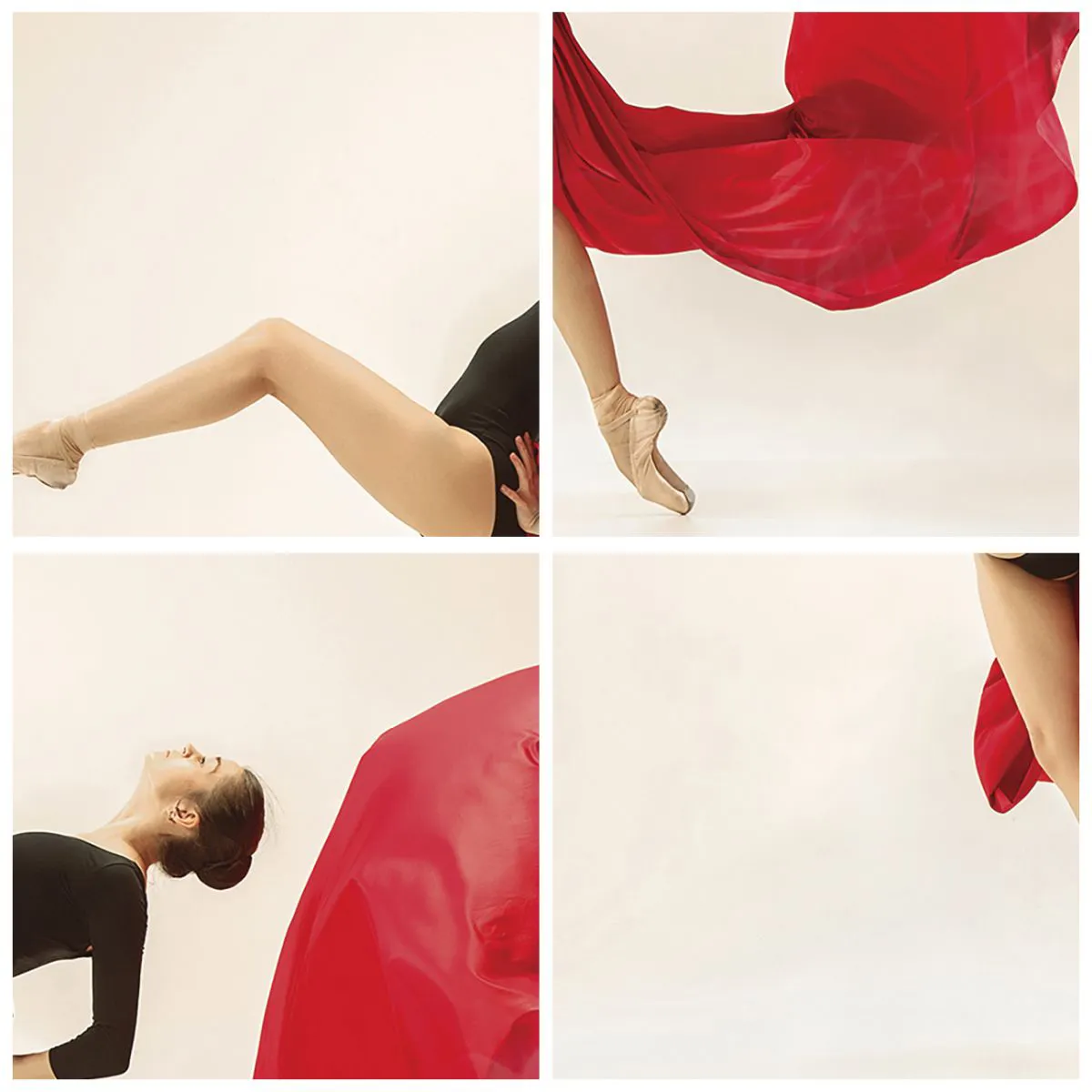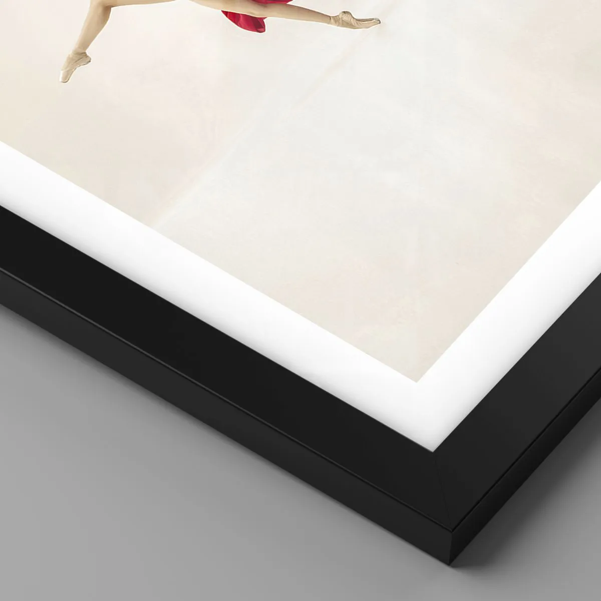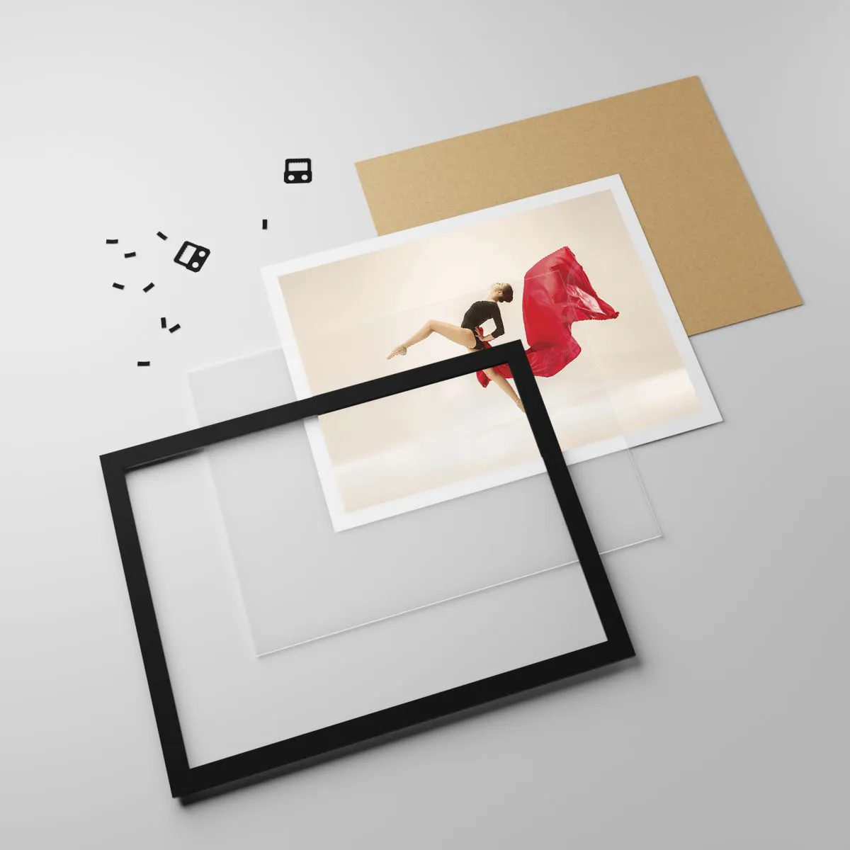 Poster in einem schwarzem Rahmen - Eine dynamische Tänzerin in schwarzem Outfit und rotem Stoff in Bewegung. - 70x50cm - Rot und Schwarz - Moderne Wanddekoration für Wohnzimmer und Schlafzimmer ARTTOR