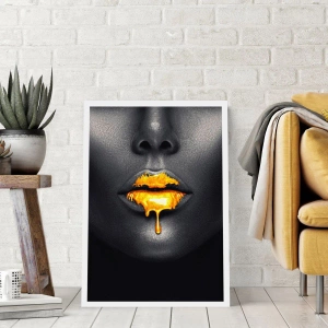 Poster - Schwarzes Frauengesicht mit orangefarbener Farbe auf den Lippen - 50x70cm - Goldmaul - Moderne Wanddekoration für Wohnzimmer und Schlafzimmer ARTTOR