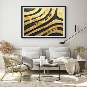 Das Poster „Golden Lines“ ist im Format 50x70 cm erhältlich und wird mit einem schwarzen Rahmen geliefert, sodass es sofort aufgehängt werden kann. Der elegante Rahmen verleiht dem gesamten Werk eine edle Optik.
