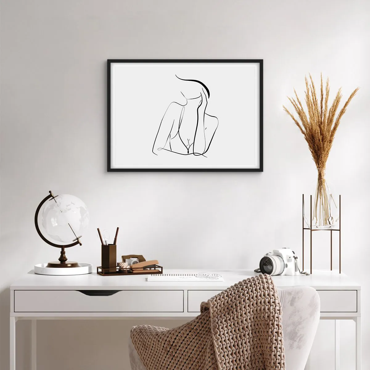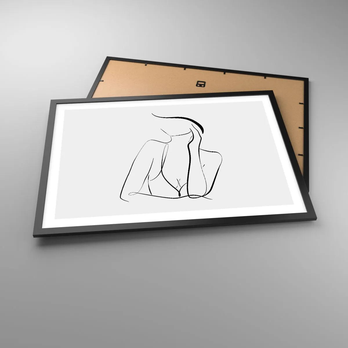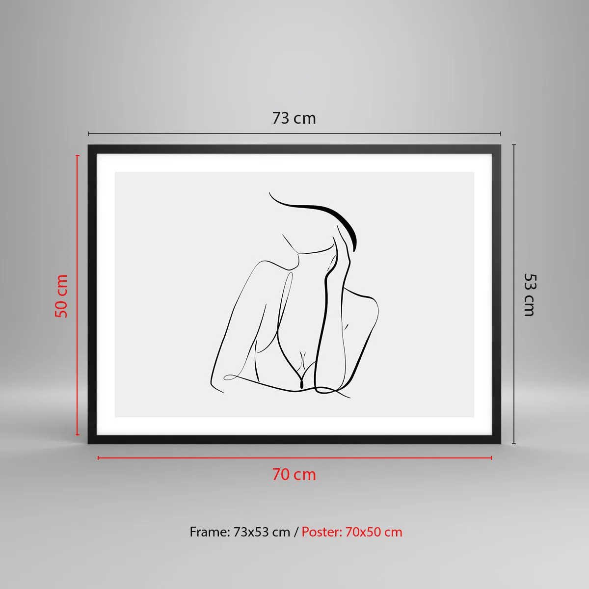Poster in einem schwarzem Rahmen - Eine zarte Skizze einer weiblichen Silhouette im minimalistischen Stil - 70x50cm - Auf der Traumwelle - Moderne Wanddekoration für Wohnzimmer und Schlafzimmer ARTTOR
