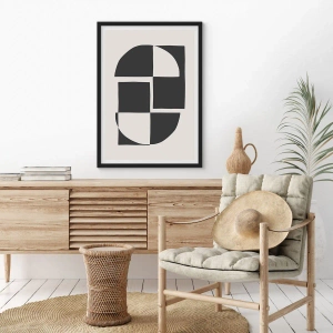 Poster in einem schwarzem Rahmen - Abstrakte geometrische Formen in Schwarz und Weiß - 70x50cm - Antithese - Synthese - Moderne Wanddekoration für Wohnzimmer und Schlafzimmer ARTTOR