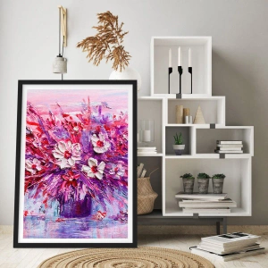 Poster in einem schwarzem Rahmen - Ein Blumenstrauß in Rosa-, Lila- und Weißtönen - 50x70cm - Unschuld und Leidenschaft - Moderne Wanddekoration für Wohnzimmer und Schlafzimmer ARTTOR