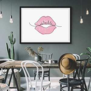 Poster in einem schwarzem Rahmen - Minimalistische Illustration von rosa Lippen auf weißem Hintergrund - 50x70cm - Bereit zum Küssen? - Moderne Wanddekoration für Wohnzimmer und Schlafzimmer ARTTOR