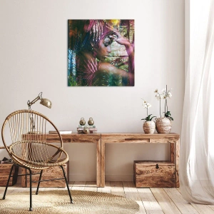 Bild auf Leinwand - Leinwandbild - Porträt einer Frau, umgeben von exotischer Vegetation - 70x50cm - Mutter Natur im Dschungel - Moderne Wanddekoration für Wohnzimmer und Schlafzimmer ARTTOR
