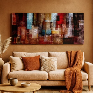 Die Leinwand wird über den Rahmen gespannt. Die Seiten und Kanten werden gedruckt, um das Bild fortzusetzen. Das Bild ist fertig zum Aufhängen an der Wand. Jedes Produkt hat einen am Rahmen befestigten Anhänger und ein Montageset (Schraube + Stift).