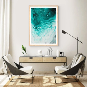 Poster in einem Rahmen aus heller Eiche - Verschmelzen in Weiß und Türkis - 100x70 cm