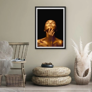 Poster in einem schwarzem Rahmen - Eine goldene Figur auf schwarzem Hintergrund in eleganter Pose - 50x70cm - Wie goldene Seide - Moderne Wanddekoration für Wohnzimmer und Schlafzimmer ARTTOR