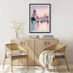 Poster in einem schwarzem Rahmen - Im regnerischen Dunst - 61x91 cm