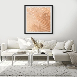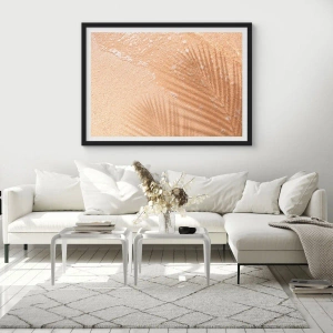 - Dieses dezente Poster zeigt den Schatten von Palmblättern auf goldenem Sand. Eine perfekte Wahl für Innenräume, die von der Natur und einem tropischen Klima inspiriert sind.