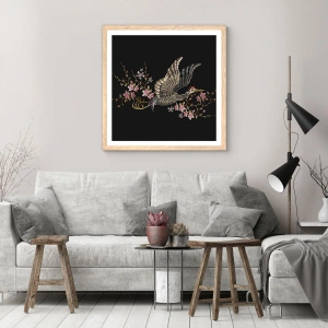 Poster in einem Rahmen aus heller Eiche - Exotischer gestickter Vogel - 70x50 cm