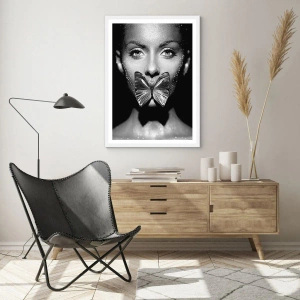 Poster in einem weißen Rahmen - Schmetterlingskuss - 30x30 cm