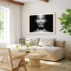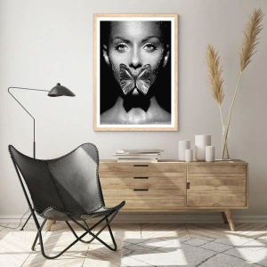 Poster in einem Rahmen aus heller Eiche - Schmetterlingskuss - 50x70 cm