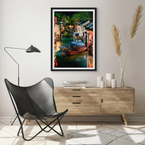 Poster in einem schwarzem Rahmen - Ein Abend auf einer chinesischen Straße - 30x30 cm