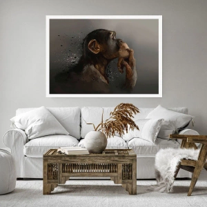 Poster - Porträt eines Affen in nachdenklicher Pose vor grauem Hintergrund - 100x70cm - Sicherlich ein Denker - Moderne Wanddekoration für Wohnzimmer und Schlafzimmer ARTTOR