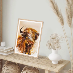 • Tiere, Abstrakt, Schottischer Büffel, Kunst, Tiere, Für das Büro, für das Arbeitszimmer, für das Esszimmer, für den Flur, für das Wohnzimmer, für das Schlafzimmer, Weiß, Braun, Orange, Vertikal