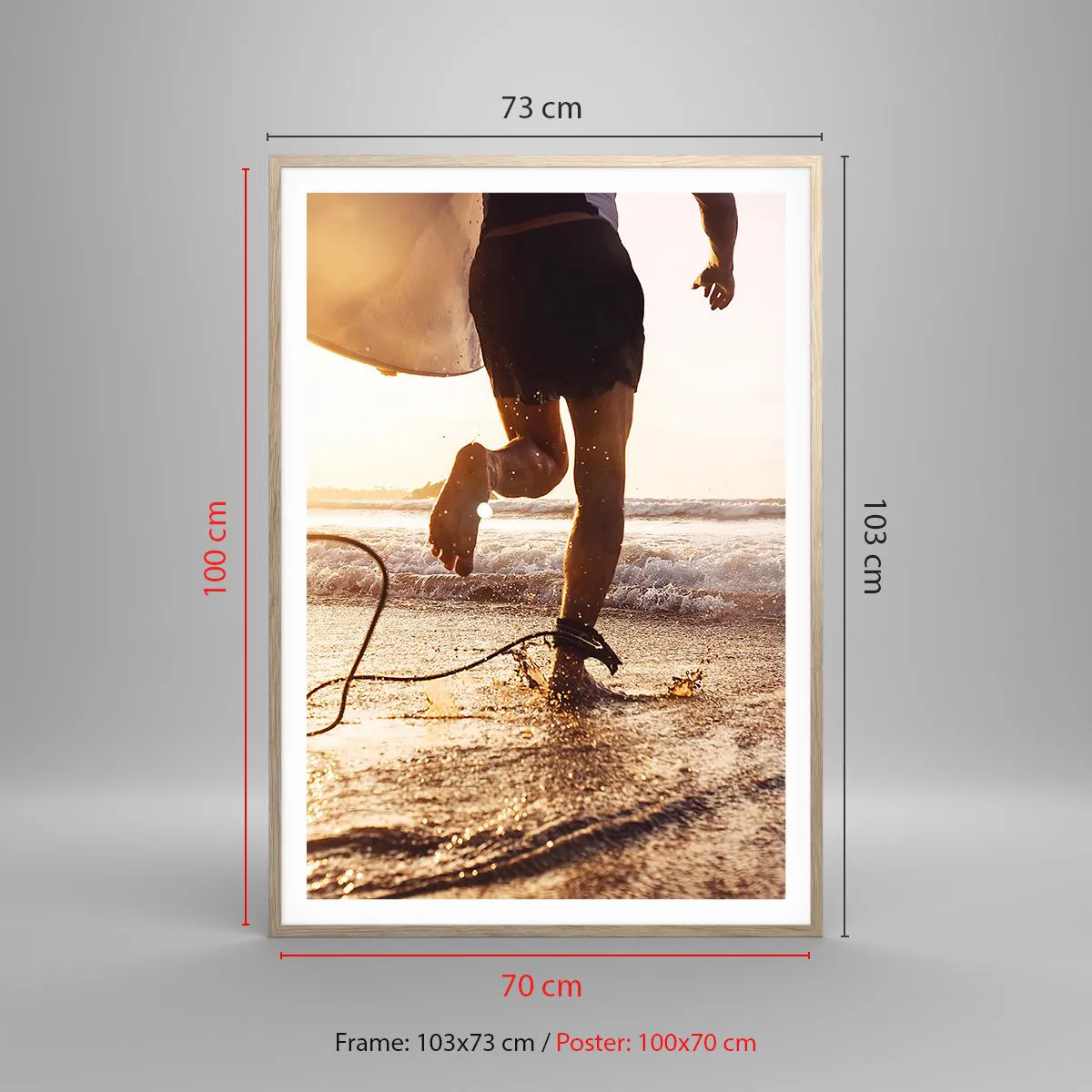 Poster in einem Rahmen aus heller Eiche - Um die Welle zu treffen - 70x100 cm