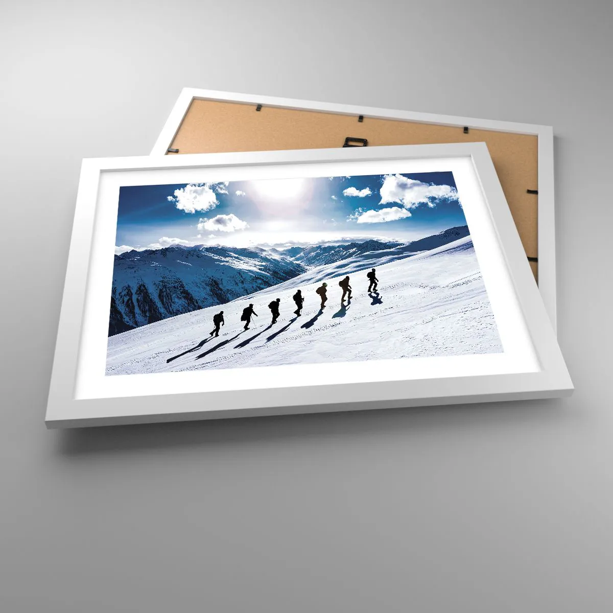 An jedem Rahmen sind zwei Aufhänger angebracht, sodass er sofort an die Wand gehängt werden kann. Der Rahmen kann sowohl vertikal als auch horizontal aufgehängt werden