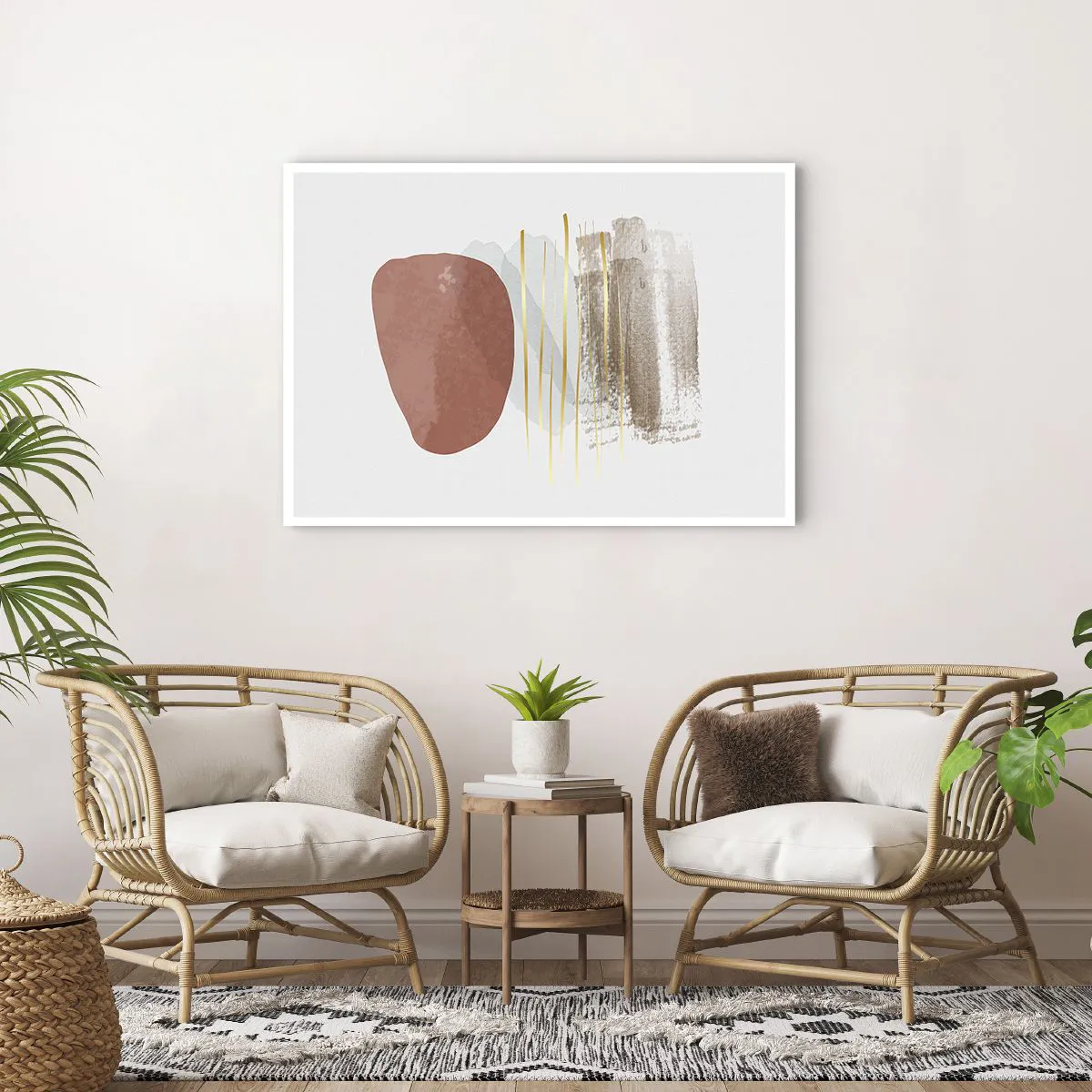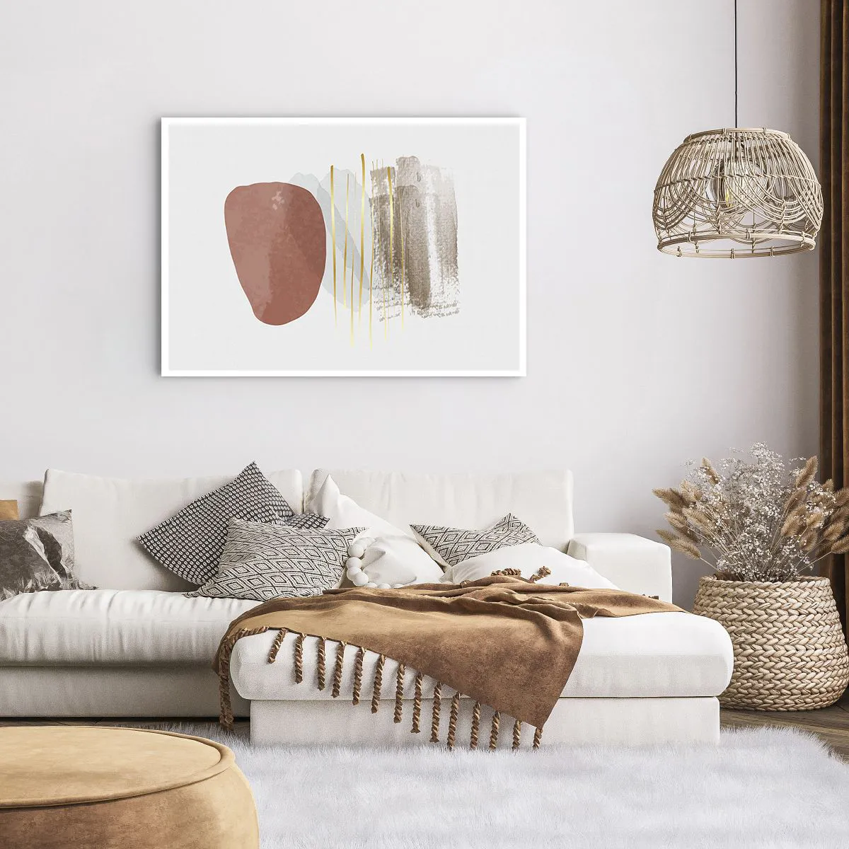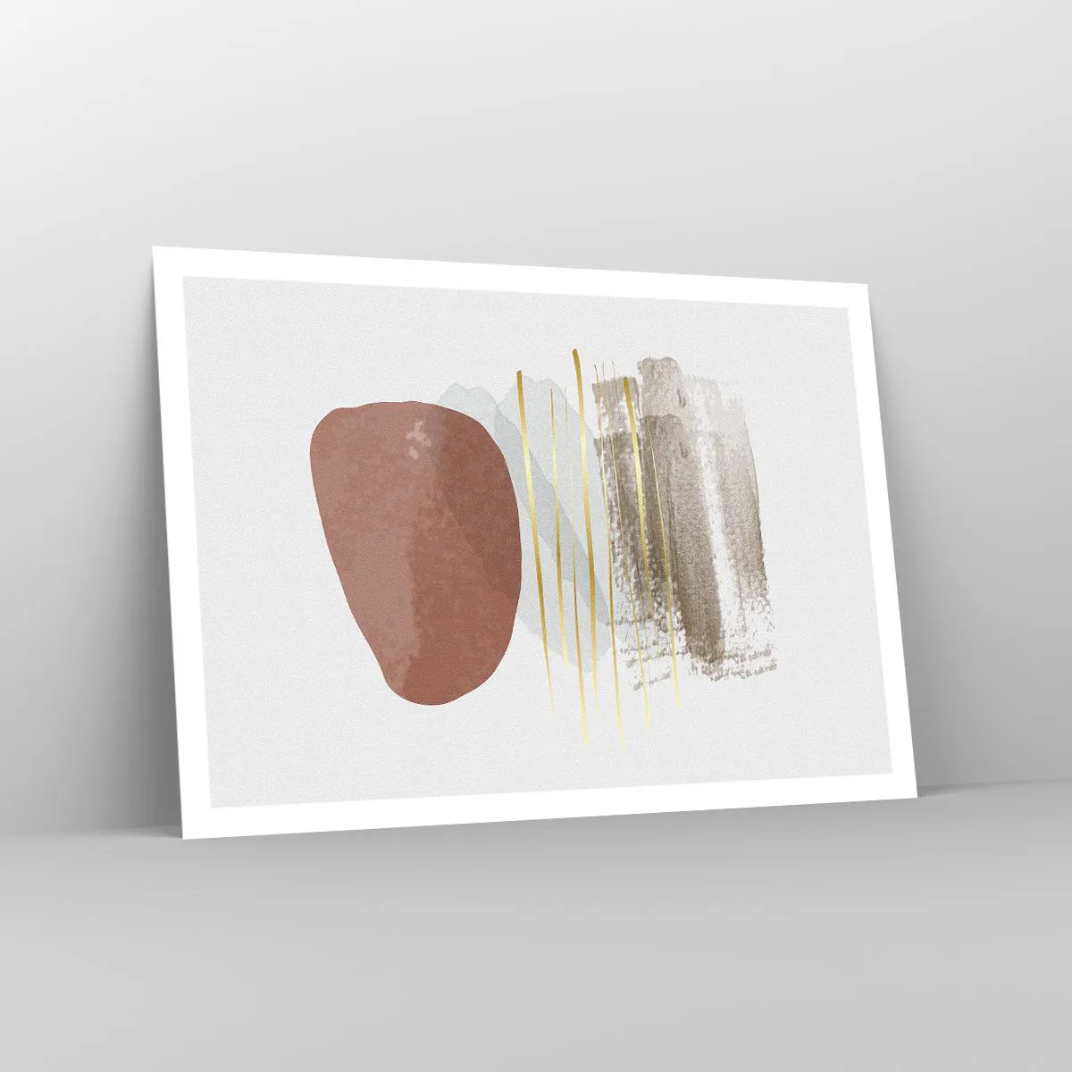 Poster - Abstrakte Komposition in Beige- und Goldtönen - 100x70cm - Abstrakte Kolonnade - Moderne Wanddekoration für Wohnzimmer und Schlafzimmer ARTTOR