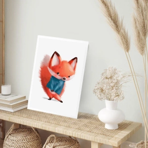 Poster - Ein charmanter Rotfuchs im blauen Pullover - 50x70cm - Steht mir das gut? - Moderne Wanddekoration für Wohnzimmer und Schlafzimmer ARTTOR