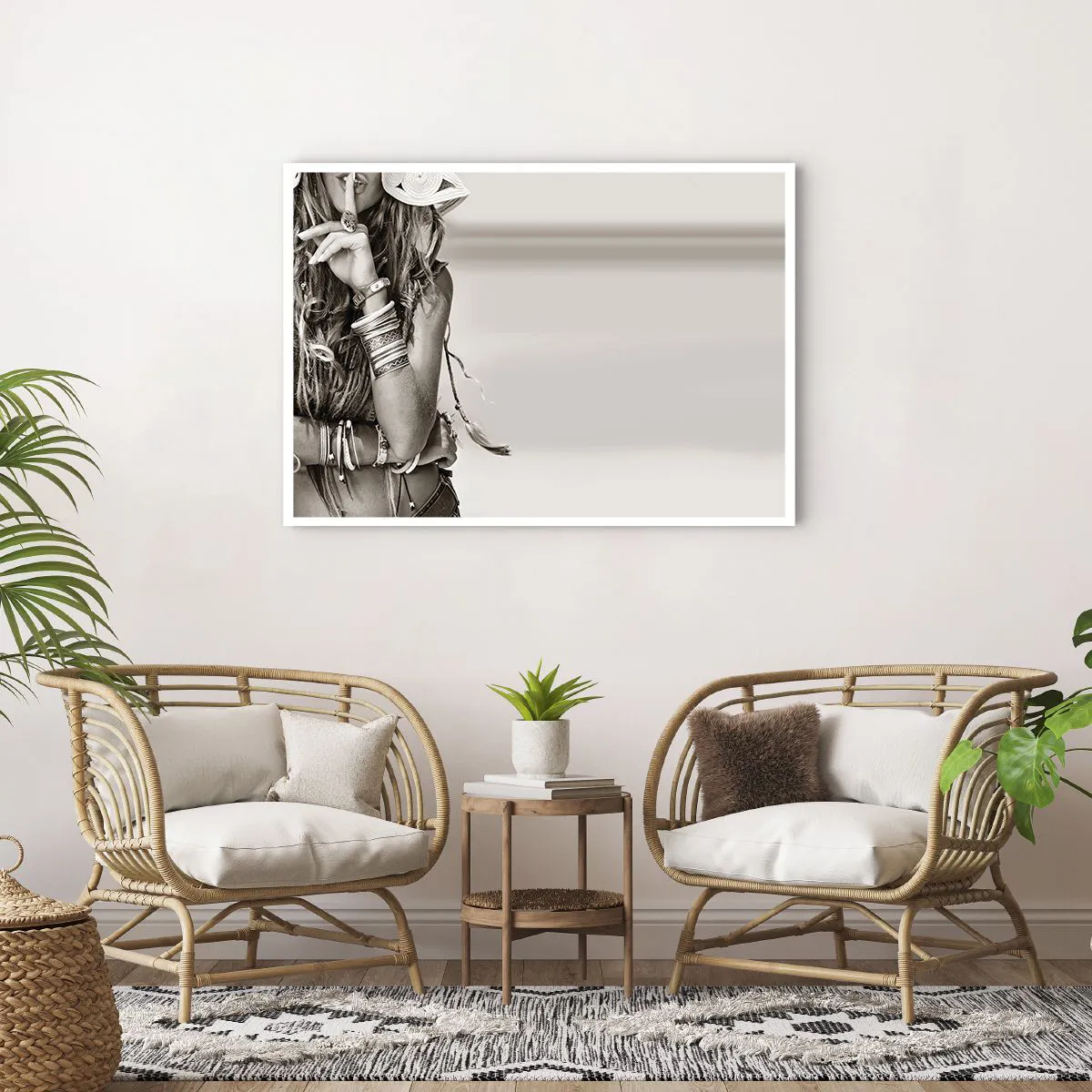 Poster - Porträt einer Boho-Frau mit Schmuck - 100x70cm - Wieso ein Mädchen - Moderne Wanddekoration für Wohnzimmer und Schlafzimmer ARTTOR