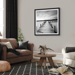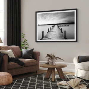 • Landschaft, See, Holzbrücke, Schwarzweiß, Landschaften, Nautik, Brücken, Natur, Reisen, Für das Büro, für das Arbeitszimmer, für das Esszimmer, für das Badezimmer, für den Flur, für das Wohnzimmer, für das Schlafzimmer, Grau, Schwarz und Weiß, Horizontal