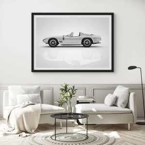 - Ein Poster mit einem klassischen weißen Cabrio auf neutralem Hintergrund. Ein elegantes und stilvolles Design, das die Innenräume von Autoliebhabern perfekt ergänzt.