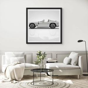 Das Poster misst 50 x 70 cm und ist in einem eleganten schwarzen Rahmen gerahmt, der seinen einzigartigen Charakter unterstreicht und Schutz bietet. Die Details des Cabriolets, wie die Reflexionen auf dem Lack und die klassischen Linien der Karosserie, ziehen die Aufmerksamkeit auf sich und sorgen für Harmonie.