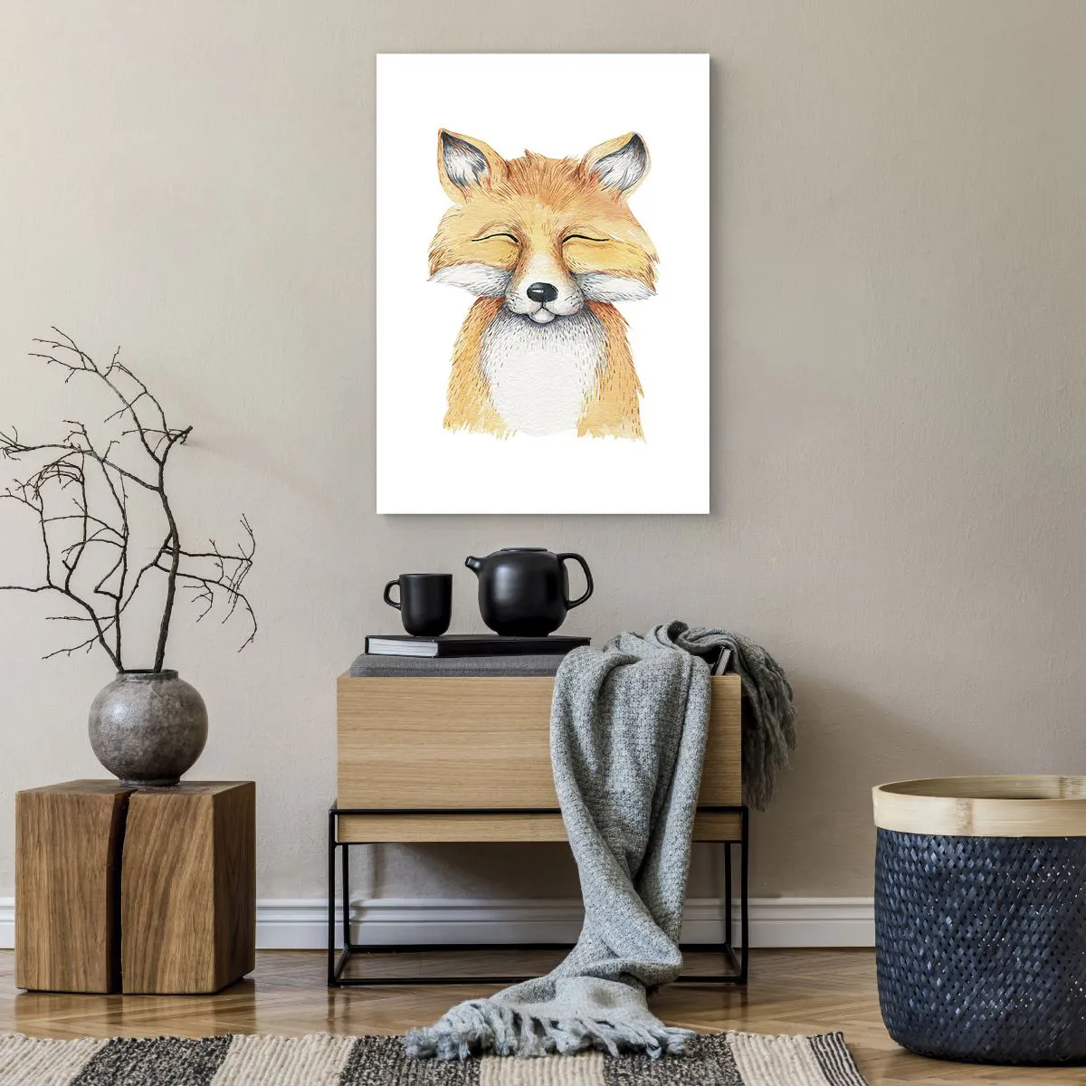 Poster - Eine bezaubernde Zeichnung eines lächelnden Fuchses in sanften Farben - 50x70cm - Fuchsstimmungen - Moderne Wanddekoration für Wohnzimmer und Schlafzimmer ARTTOR