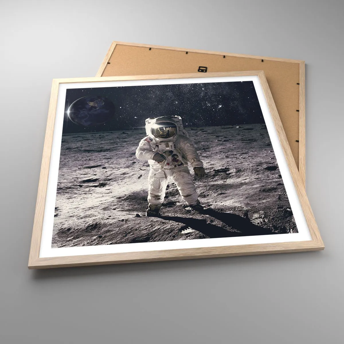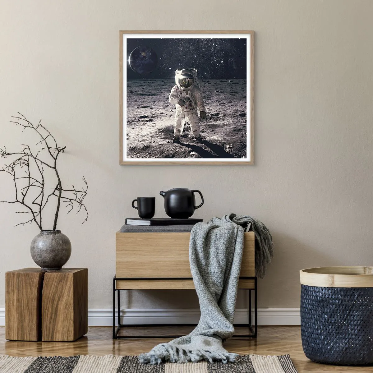 Poster in einem Rahmen aus heller Eiche - Grüße vom Mond - 60x60 cm