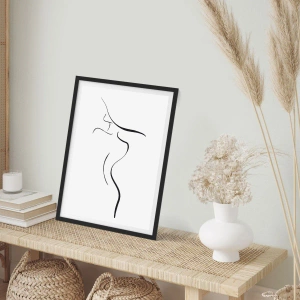 Poster in einem schwarzem Rahmen - Eine minimalistische Silhouette einer Frau, gezeichnet mit einer schwarzen Linie. - 50x70cm - Flüchtig wie eine Welle - Moderne Wanddekoration für Wohnzimmer und Schlafzimmer ARTTOR