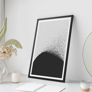 Poster in einem schwarzem Rahmen - Abstraktes Muster mit schwarzen Partikeln auf hellem Hintergrund - 70x50cm - Bewegung von Molekülen - Moderne Wanddekoration für Wohnzimmer und Schlafzimmer ARTTOR
