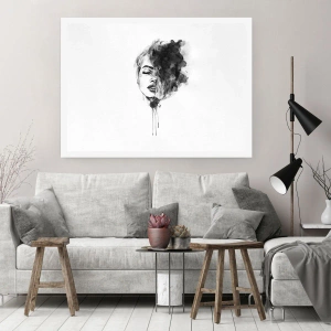 Poster - Porträt einer Frau in Schwarz-Weiß-Aquarell - 50x70cm - Wovon träumt das Mädchen - Moderne Wanddekoration für Wohnzimmer und Schlafzimmer ARTTOR