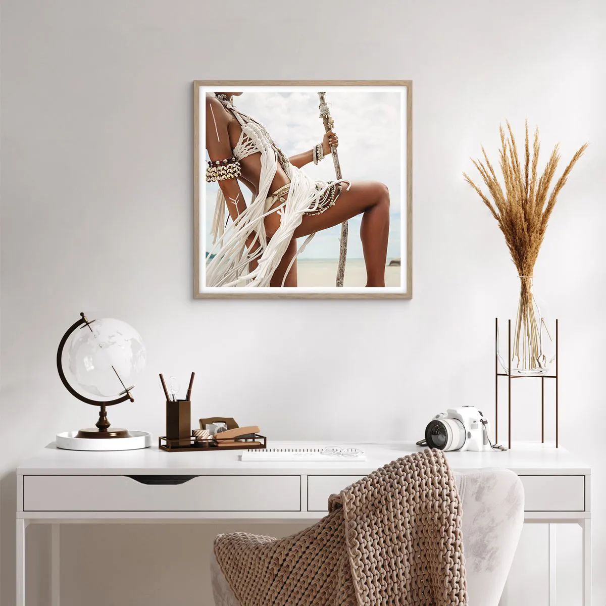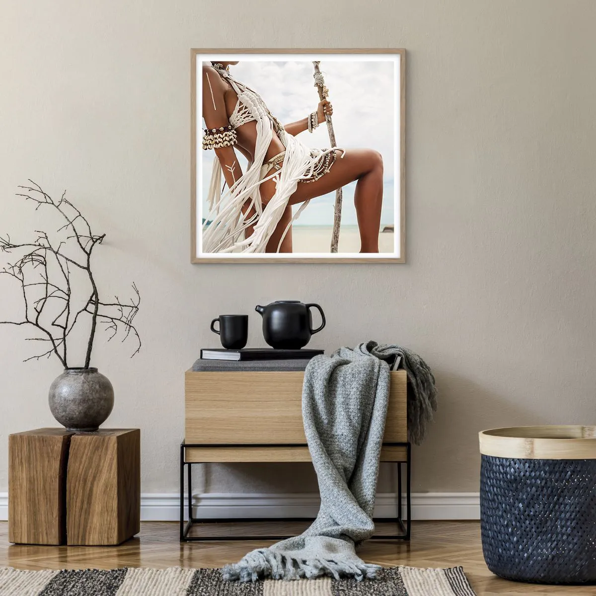 Poster in einem Rahmen aus heller Eiche - Eine Priesterin der Sonne - 60x60 cm