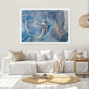 Poster - Abstrakte Flecken in Blau- und Goldtönen - 50x70cm - Goldstaub - Moderne Wanddekoration für Wohnzimmer und Schlafzimmer ARTTOR