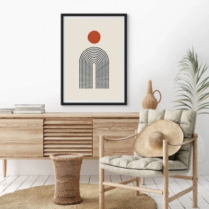 Poster in einem schwarzem Rahmen - Modernes abstraktes Muster mit Linien und einem roten Kreis - 70x50cm - Magnetismus von Formen und Farben - Moderne Wanddekoration für Wohnzimmer und Schlafzimmer ARTTOR