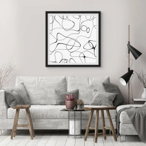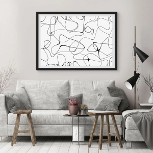 Poster in einem schwarzem Rahmen - Abstrakte schwarze Linien auf weißem Hintergrund im minimalistischen Stil - 100x70cm - Lebenswege, Wechselfälle - Moderne Wanddekoration für Wohnzimmer und Schlafzimmer ARTTOR