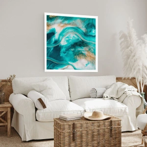 Poster - Eine abstrakte Komposition in Türkis- und Goldtönen. - 50x70cm - Der Fluss aus Gold - Moderne Wanddekoration für Wohnzimmer und Schlafzimmer ARTTOR