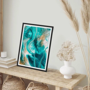 Poster in einem schwarzem Rahmen - Eine abstrakte Komposition in Türkis- und Goldtönen. - 50x70cm - Der Fluss aus Gold - Moderne Wanddekoration für Wohnzimmer und Schlafzimmer ARTTOR