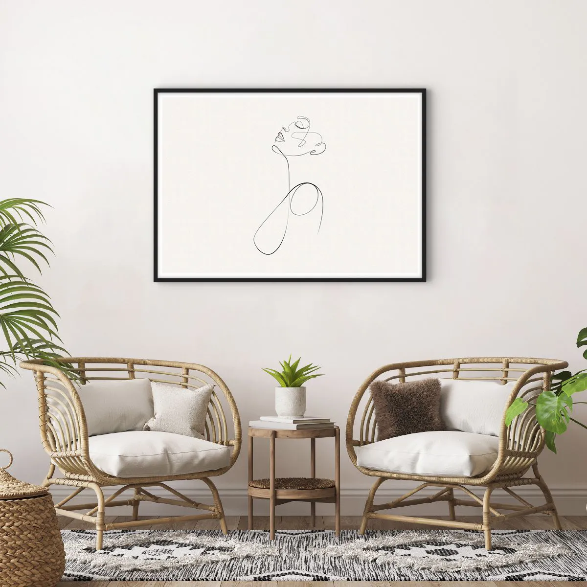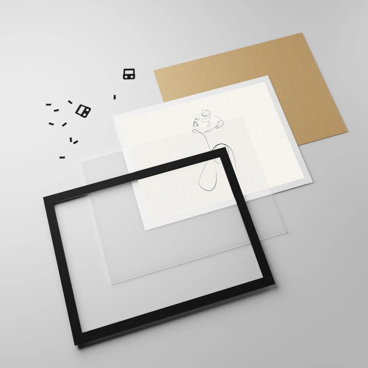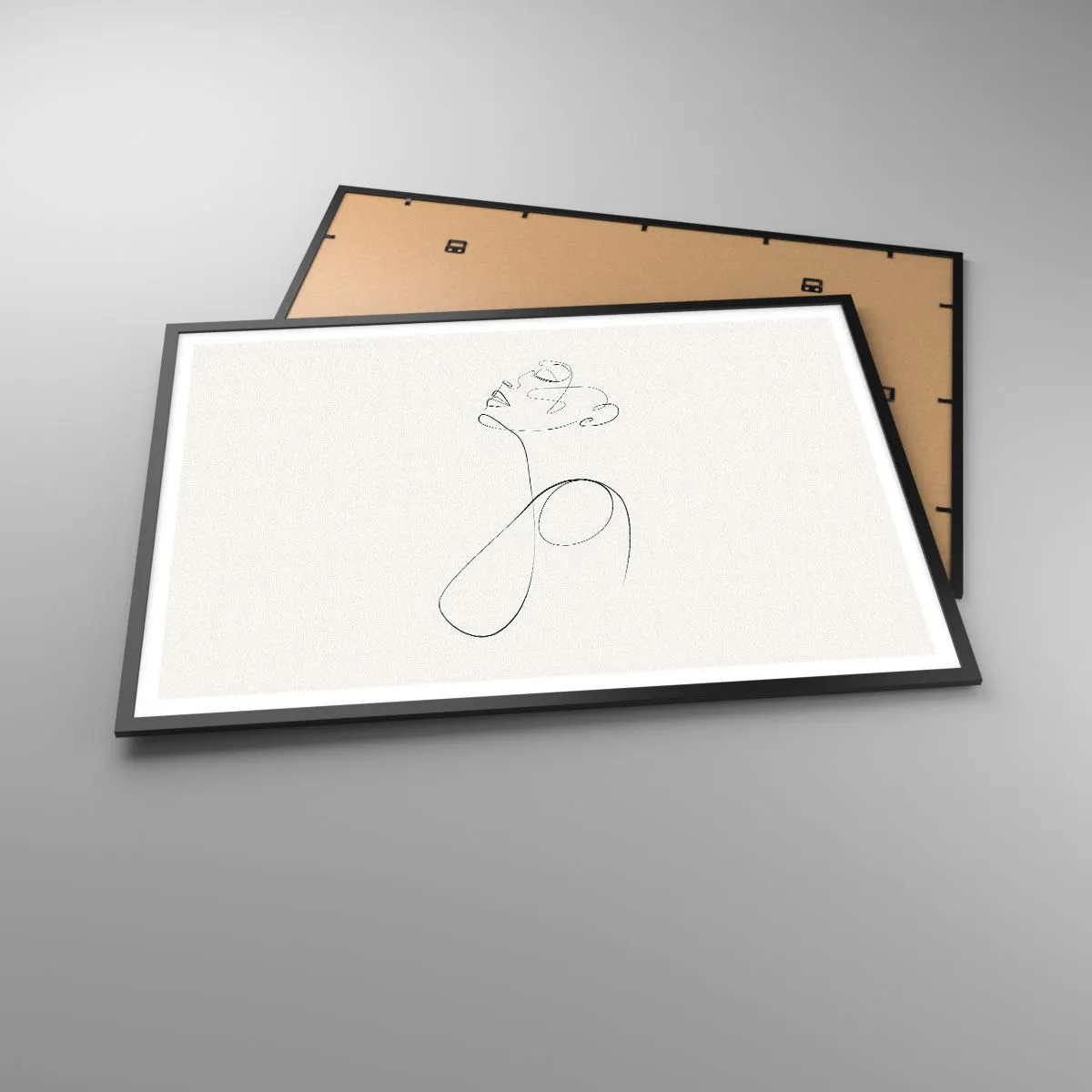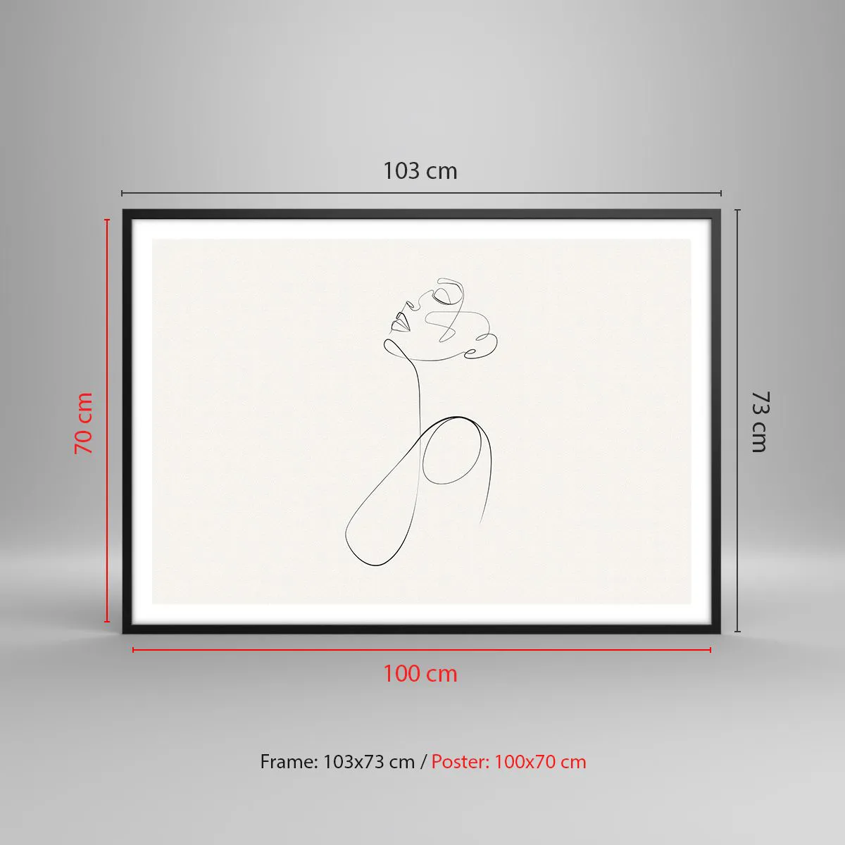 Poster in einem schwarzem Rahmen - Minimalistische Strichzeichnung Gesichtsskizze auf weißem Hintergrund - 100x70cm - Versunken in Träumen - Moderne Wanddekoration für Wohnzimmer und Schlafzimmer ARTTOR