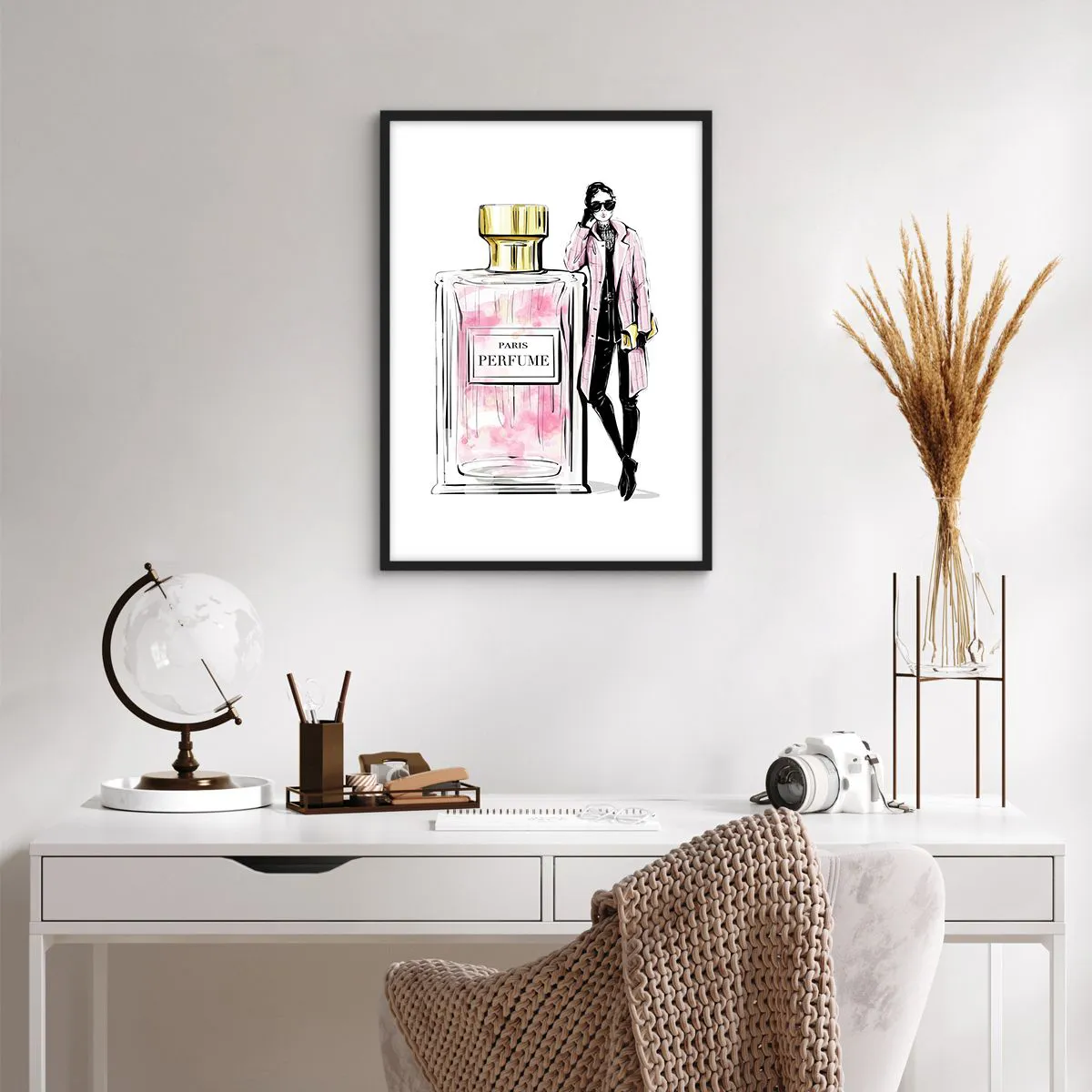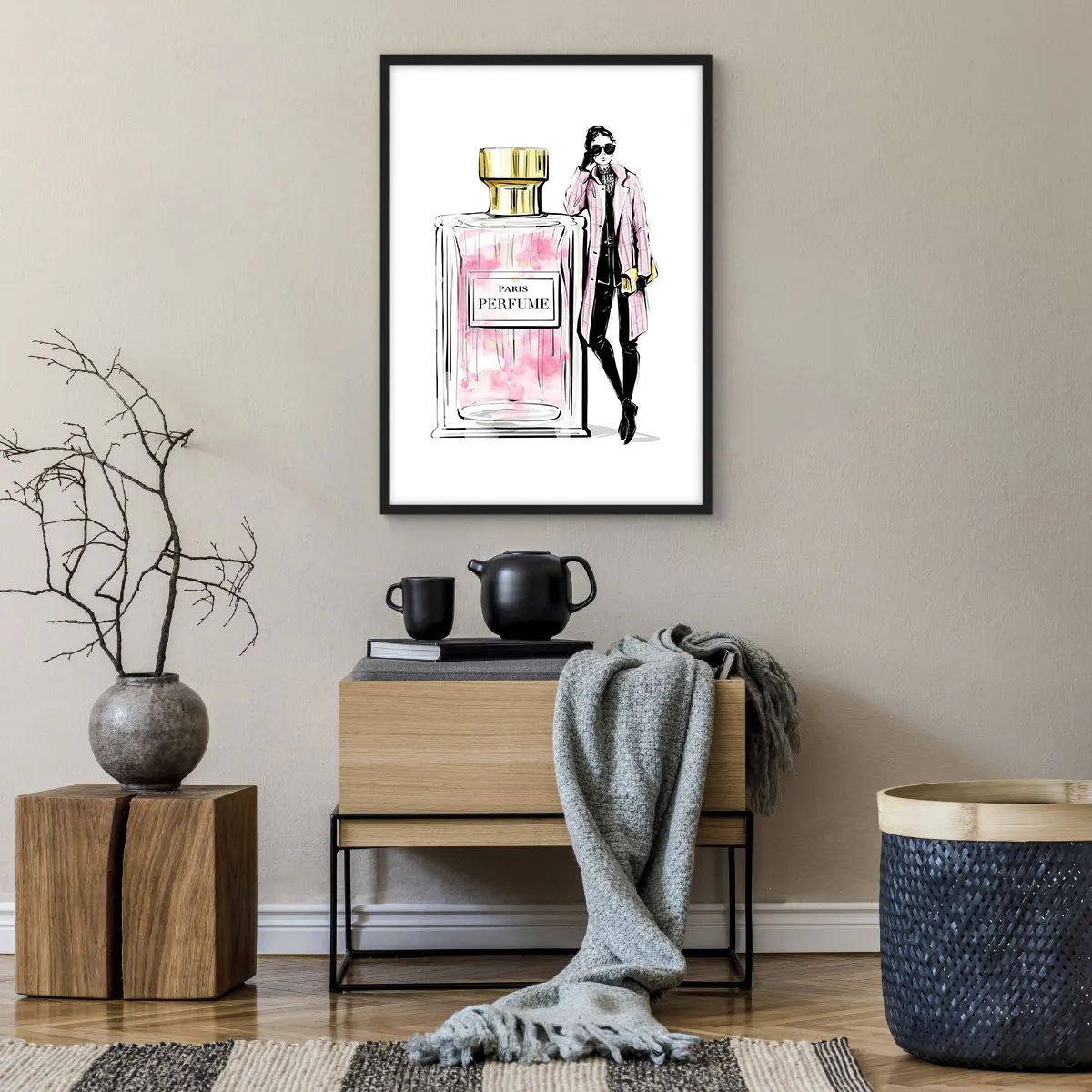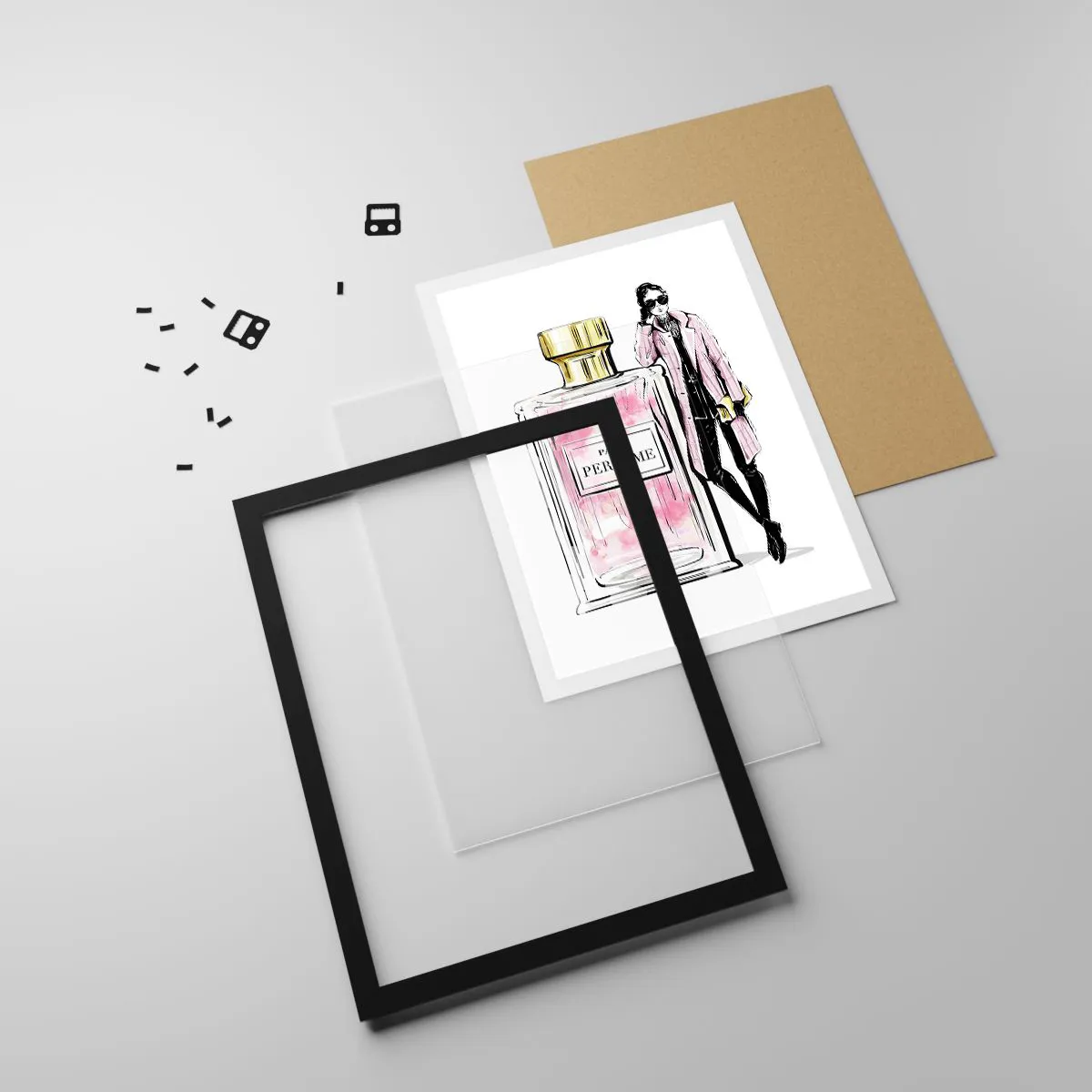 Dieses Poster passt hervorragend in ein elegantes Wohnzimmer, ein stilvolles Schlafzimmer oder auch ein modernes Büro. Es eignet sich auch hervorragend als Geschenkidee für Liebhaber von Mode, Parfüm und Luxusdesign. Der mitgelieferte schwarz-weiße Rahmen unterstreicht den eleganten Stil und erleichtert die Präsentation an der Wand.