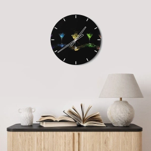 Die Uhr besteht aus 4 mm dickem Sicherheitsglas Glas. Die Herstellungstechnologie der Uhr entspricht der Sicherheitsklasse 2B2 gemäß der Norm PN-EN 12600: 2004, die Stoßfestigkeit garantiert. Die Uhr auf dem Glas ist bereit zu hängen - es hat einen Metallanhänger, einen Anhänger auf der Rückseite der Uhr und einen Schaumstoffabstand, der einen gleichmäßigen Abstand zwischen der Uhr und der Wand reguliert. Die Uhr hat einen geräuschlosen Schwimmmechanismus, der von einer 1,5-V-Batterie betrieben wird - AA-Batterie inbegriffen).