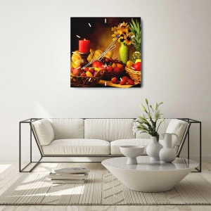 Wanduhr - Glasuhr - Stillleben mit Brot und Obst - 40x40 cm