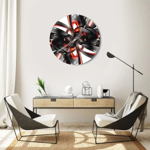 Wanduhr – Abstraktes Muster mit roten und schwarzen Formen – Abstraktes Muster mit roten und schwarzen Formen