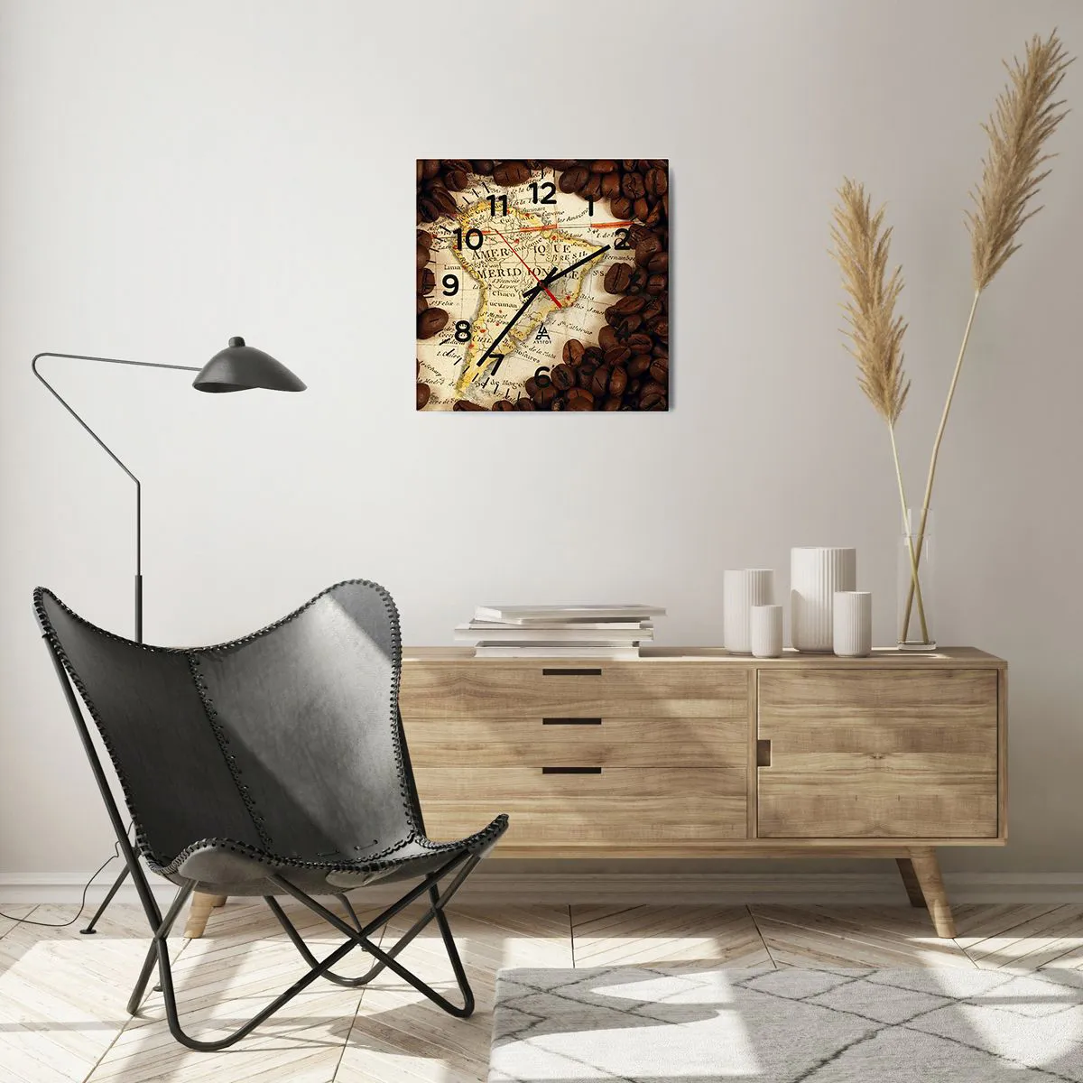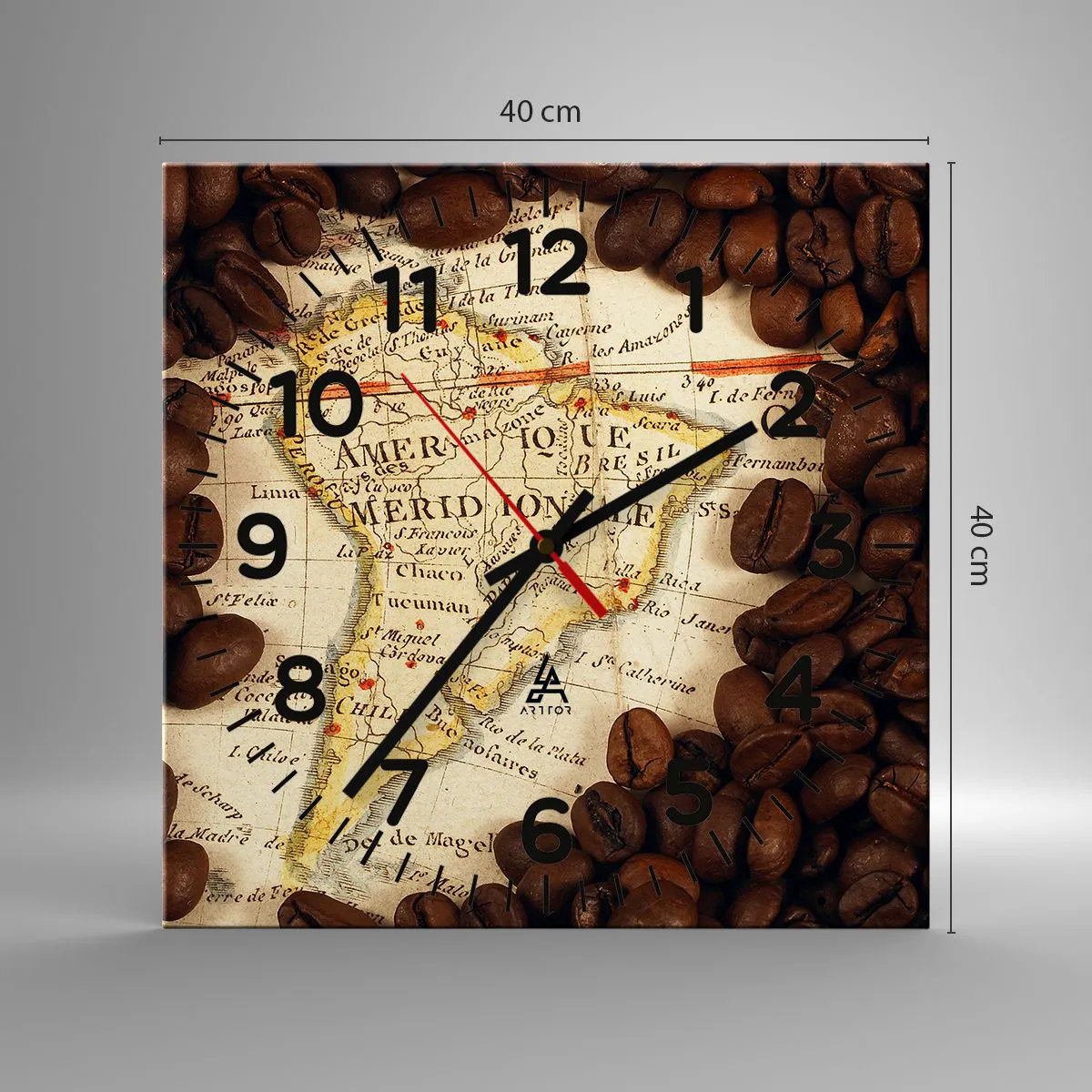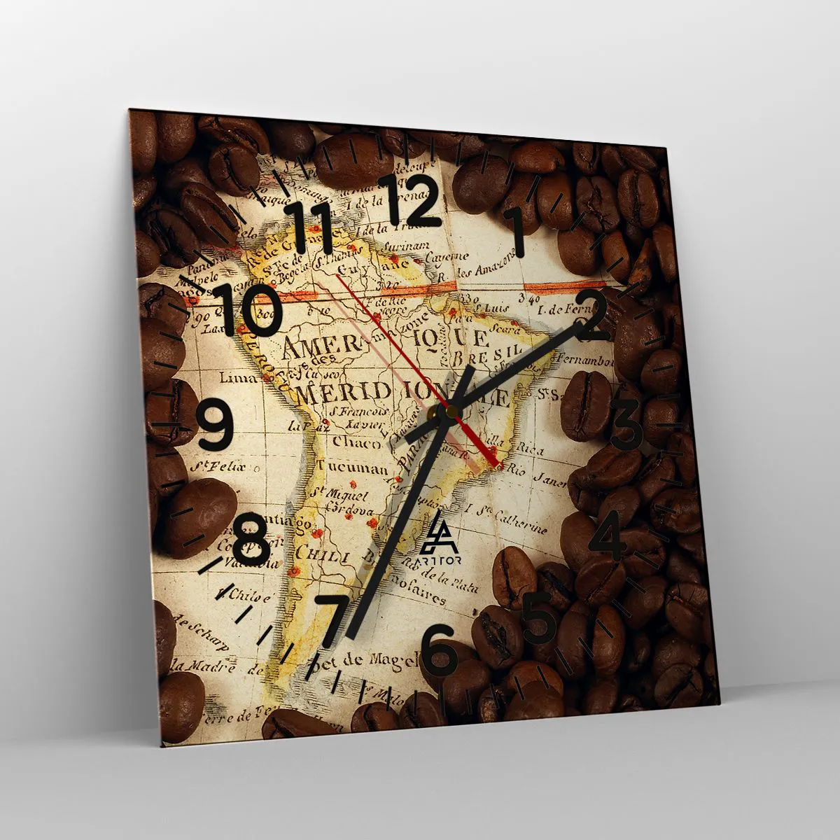Wanduhr - Glasuhr - Woher kommt der beste Kaffee? - 40x40 cm