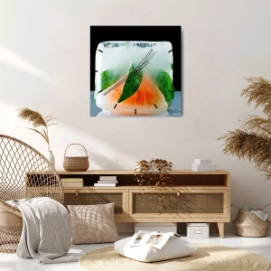 Wanduhr - Glasuhr - Ein Eiswürfel mit Minzblättern und einer Grapefruitscheibe darin - 30x30cm - Frisch und kühl - Moderne Wanddekoration für Wohnzimmer, Küche und Schlafzimmer ARTTOR
