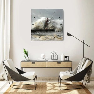 Wanduhr - Glasuhr - Ein Leuchtturm, umgeben von rauen Wellen während eines Sturms - 30x30cm - Die Wut des Ozeans - Moderne Wanddekoration für Wohnzimmer und Schlafzimmer ARTTOR