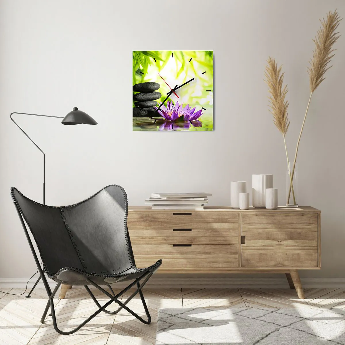 Die Uhr besteht aus robustem 4 mm dickem Glas. Glas bewahrt die natürlichen Farben des Drucks