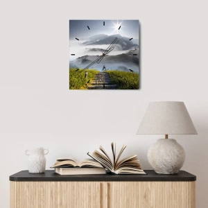 Wanduhr - Glasuhr - Immer noch den Wolken entgegen - 30x30 cm