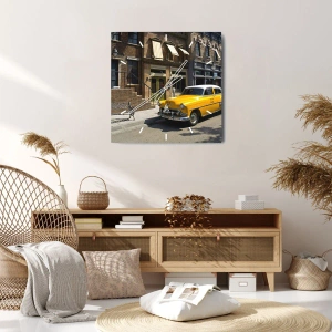 Wanduhr - Glasuhr - Ein gelbes Taxi auf einer Straße mit Mietshäusern - 30x30cm - Vor langer Zeit in Amerika - Moderne Wanddekoration für Wohnzimmer und Schlafzimmer ARTTOR